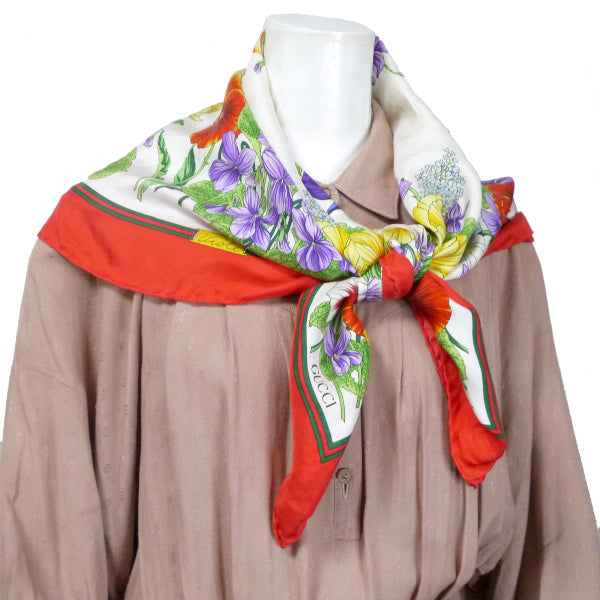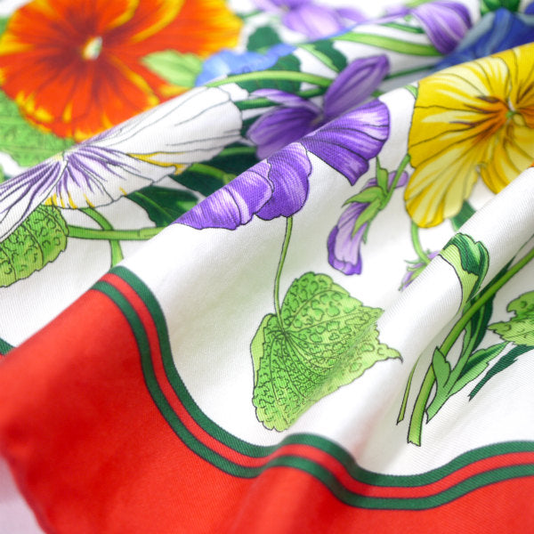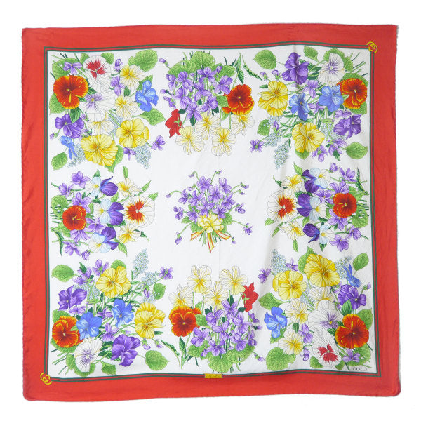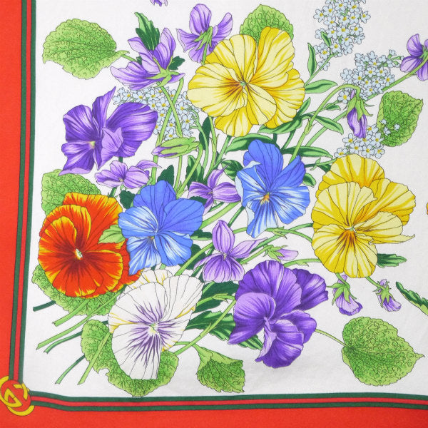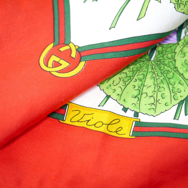 OLD Gucci シェリー×フローラ大判シルクスカーフ(赤系)
