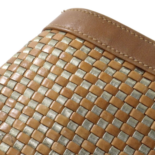 ブラウン/シルバーの市松柄 編み込みレザー×ブラウン牛革
