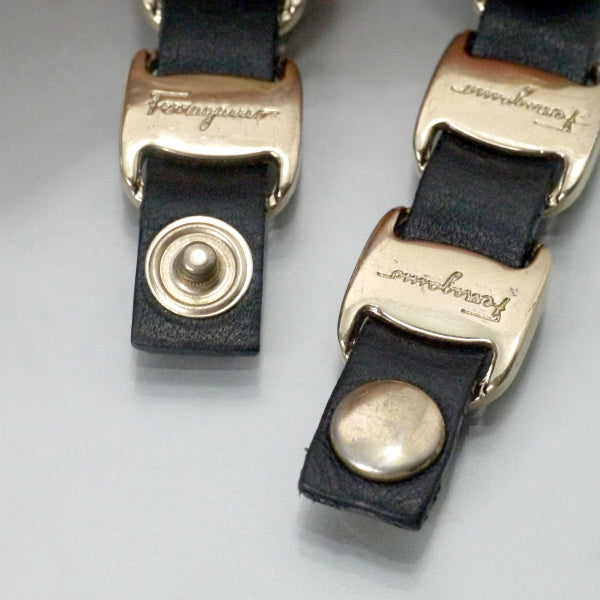 サルヴァトーレ フェラガモ  Varaシルバー×レザー ブレスレット(黒)