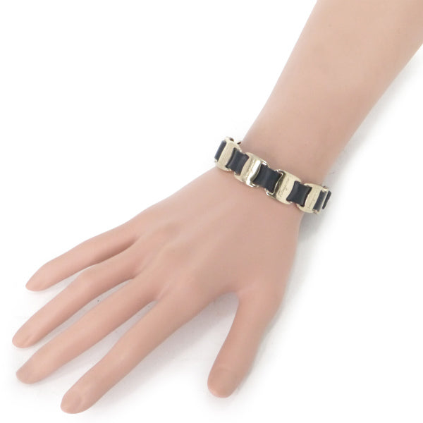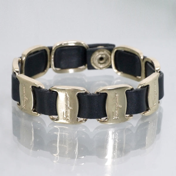 Salvatore Ferragamo Varaシルバー×レザー ブレスレット(黒)