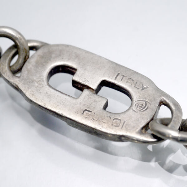 オールドグッチ GGモチーフ チェーンブレスレット(シルバー×青)