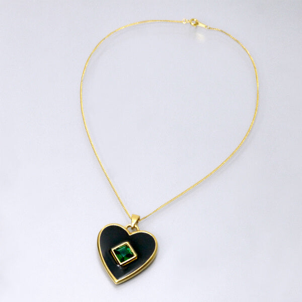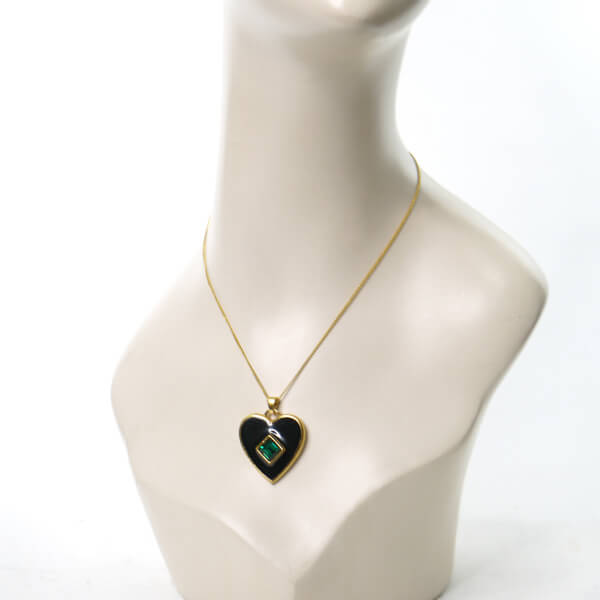 存在感抜群のブラックハートに、グリーンのストーンが輝く素敵なデザイン