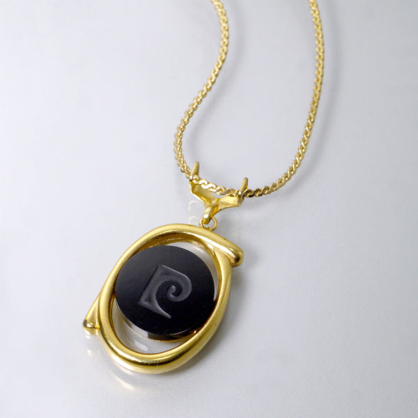 カットアウトフレームに、ブラックのPロゴモチーフが入ったネックレス