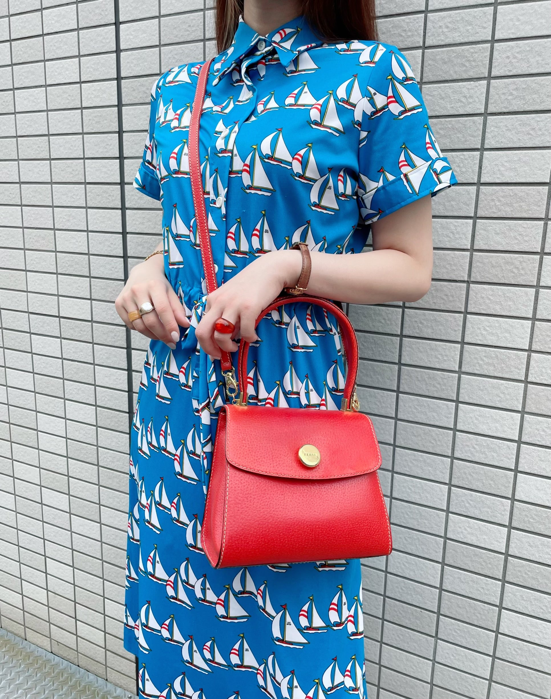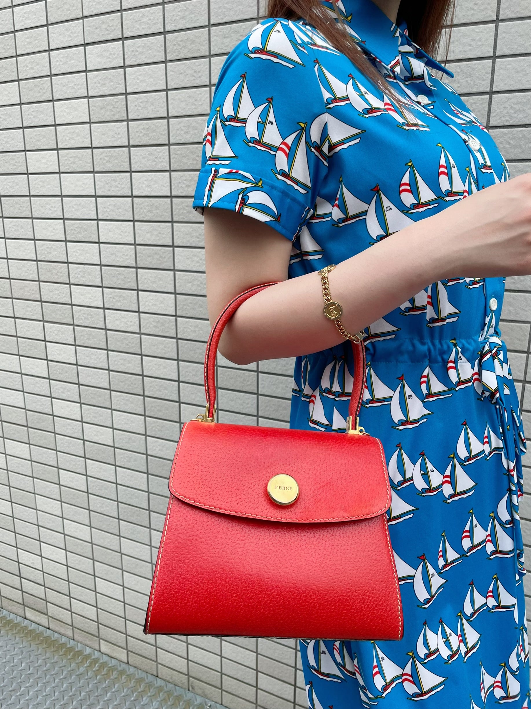 GIANFRANCO FERRE 総革2WAYハンドバッグ(朱赤)