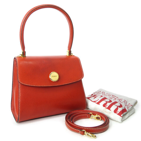 ジャンフランコ フェレ 総革2WAYハンドバッグ(朱赤)