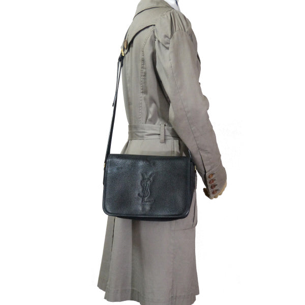 YVES SAINT LAURENT 総革ロゴステッチ スクエアショルダー(黒)