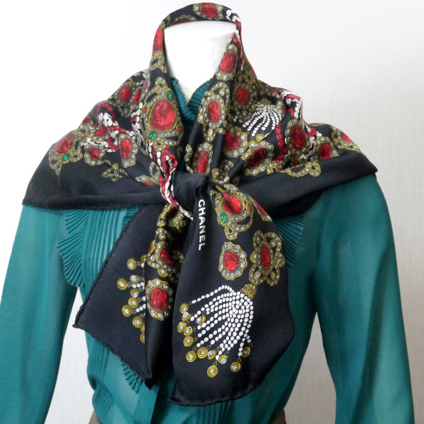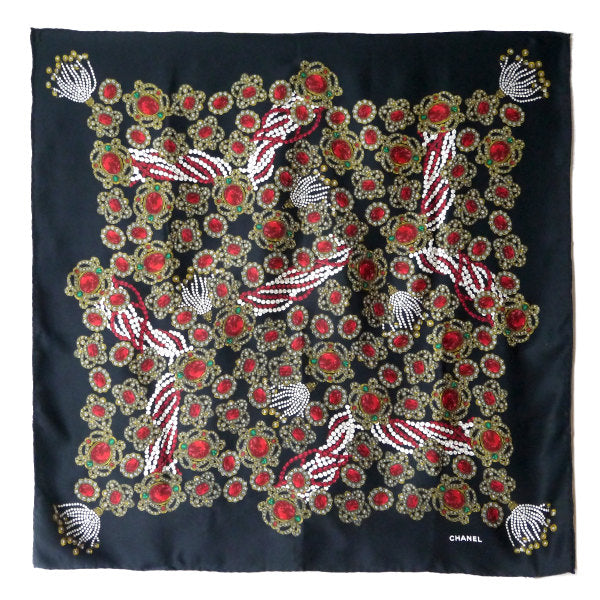 CHANELを代表する、美しいコスチュームジュエリーが描かれたスカーフ☆