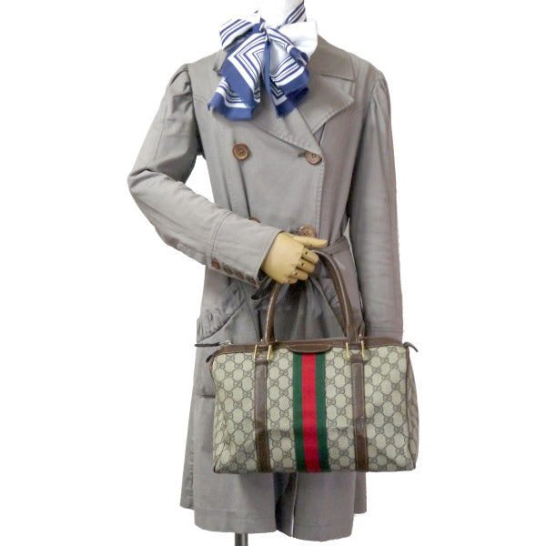 オールドグッチ 革2本シェリーラインボストン(茶・中)