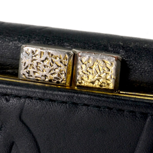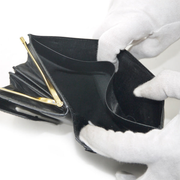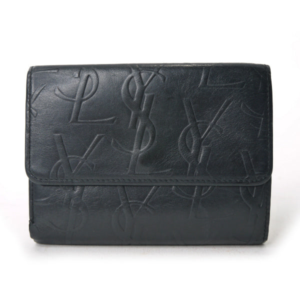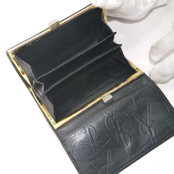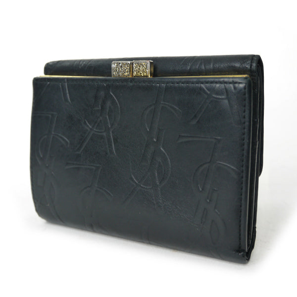 YVESSANTLAURENT 総ロゴ柄がま口レザー折り財布(黒)