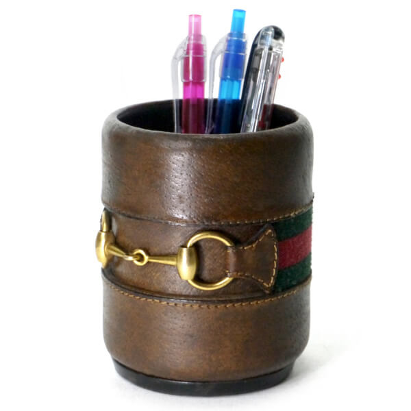 オールドグッチ レザー製シェリー×ビット ペン立て(濃茶)