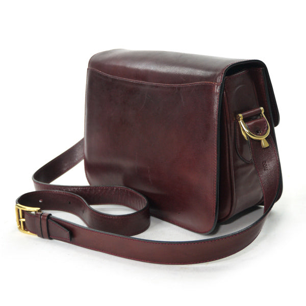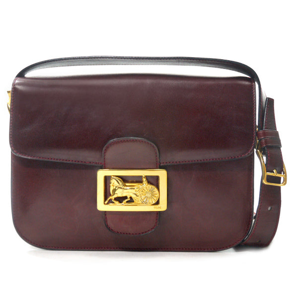 オールドセリーヌ 馬車金具3層ショルダーバッグ(ボルドー/総革)