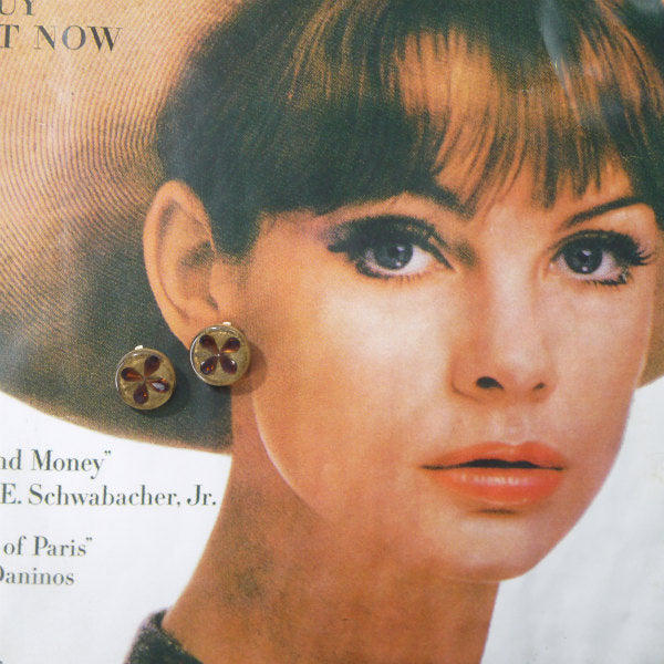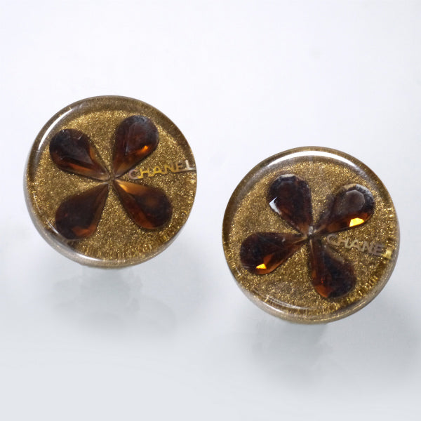 オールドシャネル クローバー ラメイヤリング(ゴールド/茶)