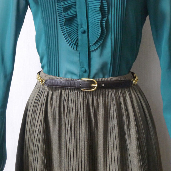 OLD CELINE クリップモチーフレザーウエスト細ベルト(濃茶)