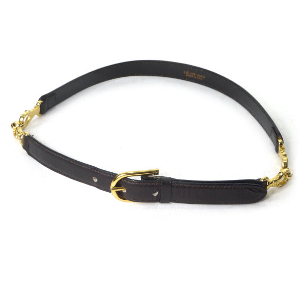 オールドセリーヌ クリップモチーフレザーウエスト細ベルト(濃茶)