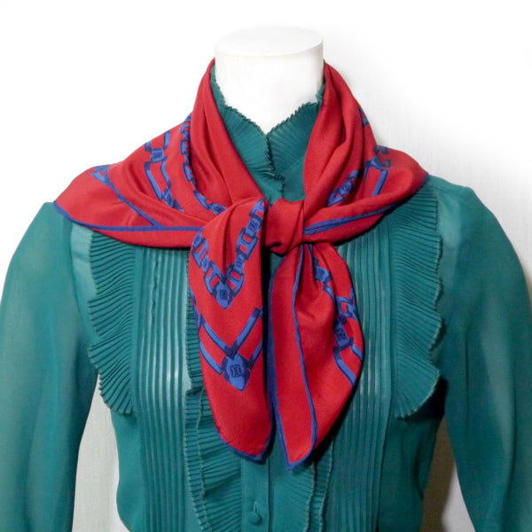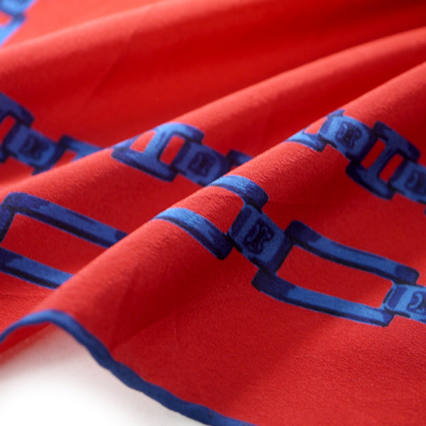オールドセリーヌ チェーン柄 中判シルクスカーフ(赤系)